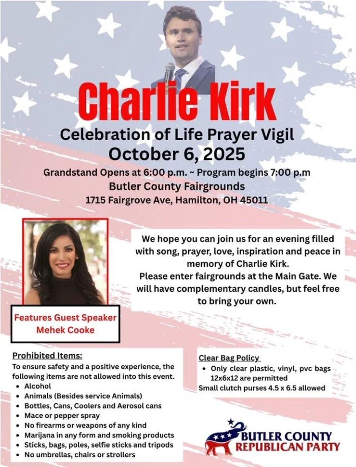 Special guest speakers for the night include Congressman Warren Davidson, Gold Star Father John Prazynski, and Butler County Sheriff Richard K. Jones. Enjoy live music by Heather Roush & Randy Farris.